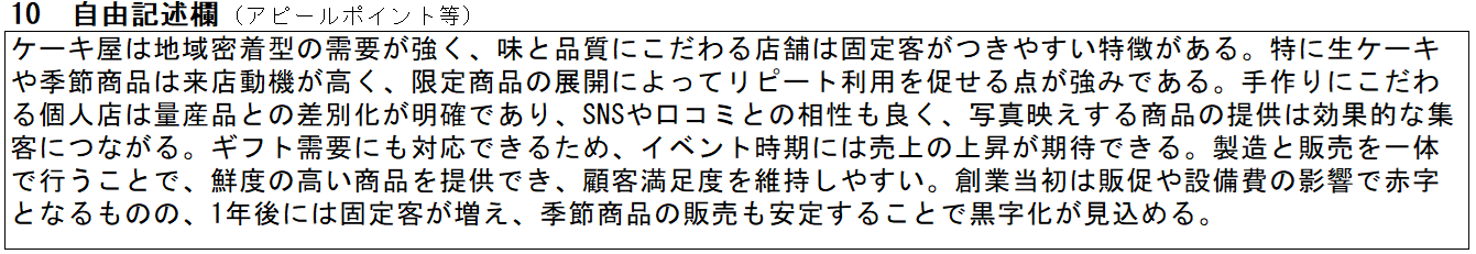 ケーキ屋・スイーツ店の記入例⑩ 自由記述欄