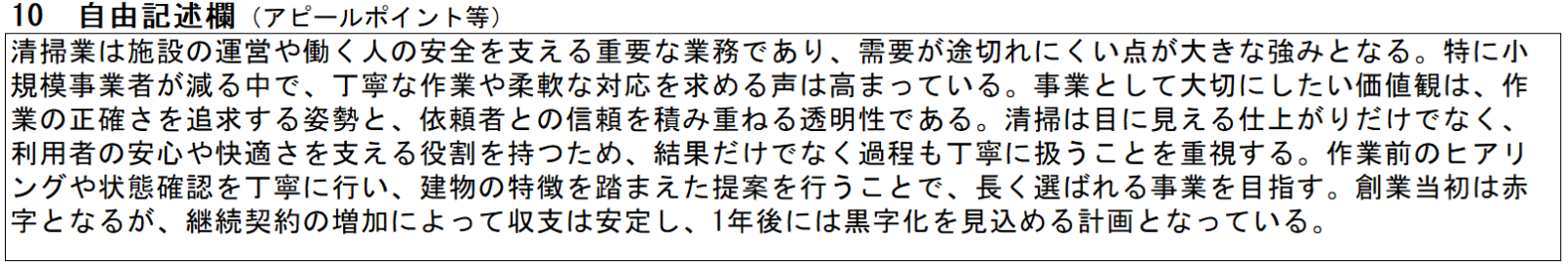 自由記述欄では、事業として大切にしたい思いをはじめ、ここまでの項目で整理できていない事項をまとめて記載します。