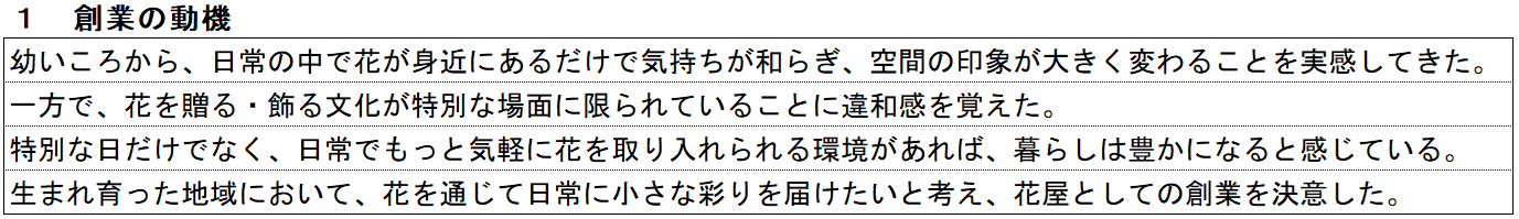 花屋の記入例① 創業の動機