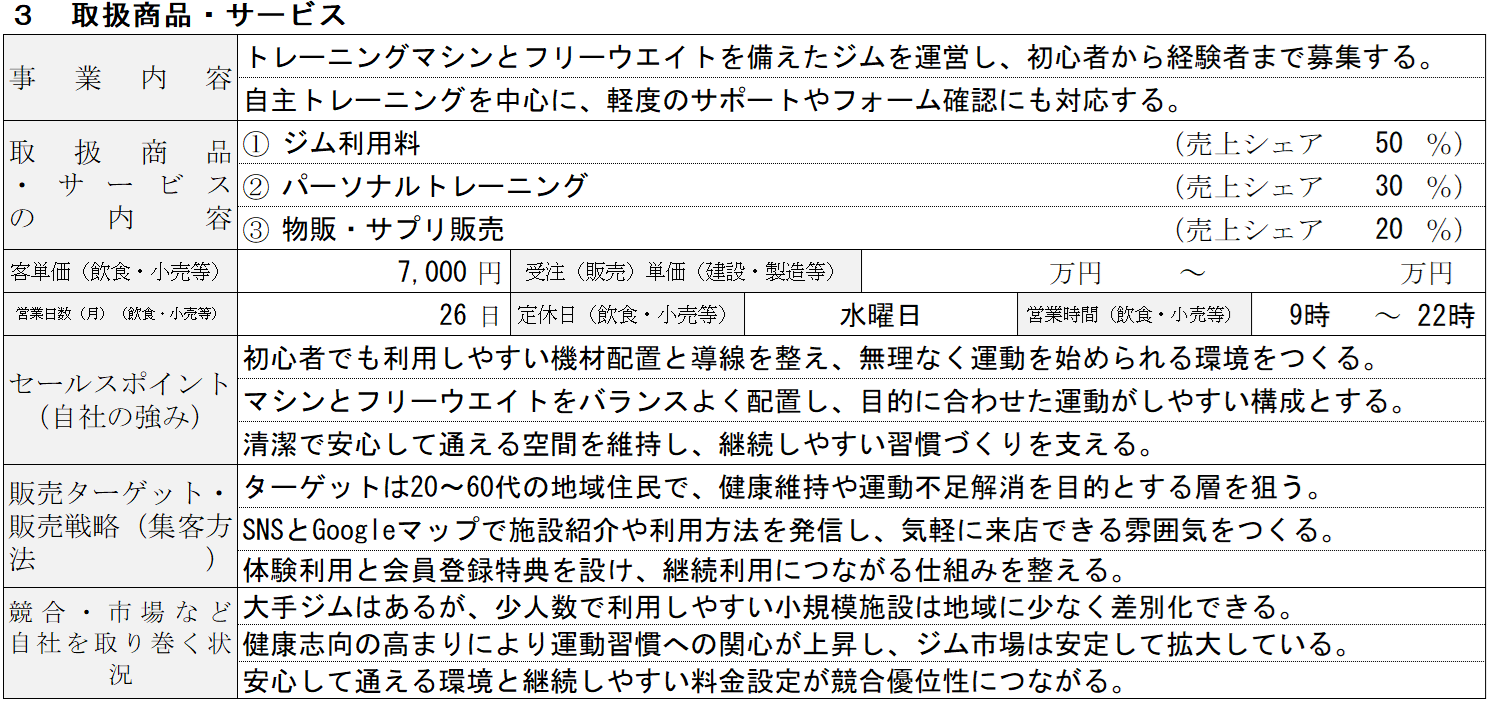 ジムの記入例③ 取扱商品・サービス