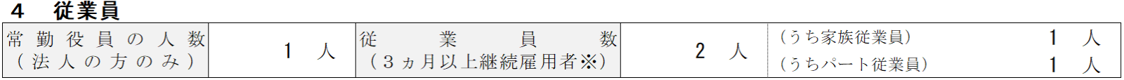 | ④従業員 | 常勤役員や一般的な従業員など、人員状況を整理します。 | ||