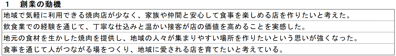 焼肉屋の記入例① 創業の動機