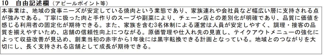 焼肉屋の記入例⑩ 自由記述欄