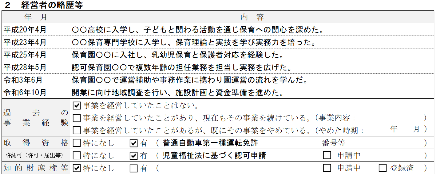 略歴は強みを誇示するための項目ではありません。自分がどのような業務に慣れていて、どのような業務に課題があるのかを整理することで、無理のない園運営とは何かを考えるための項目です。