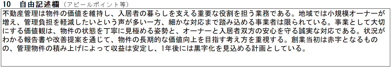 不動産管理・仲介の記入例⑩ 自由記述欄
