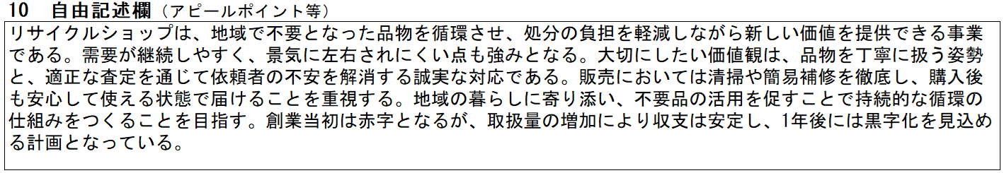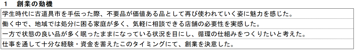 リサイクルショップの記入例① 創業の動機