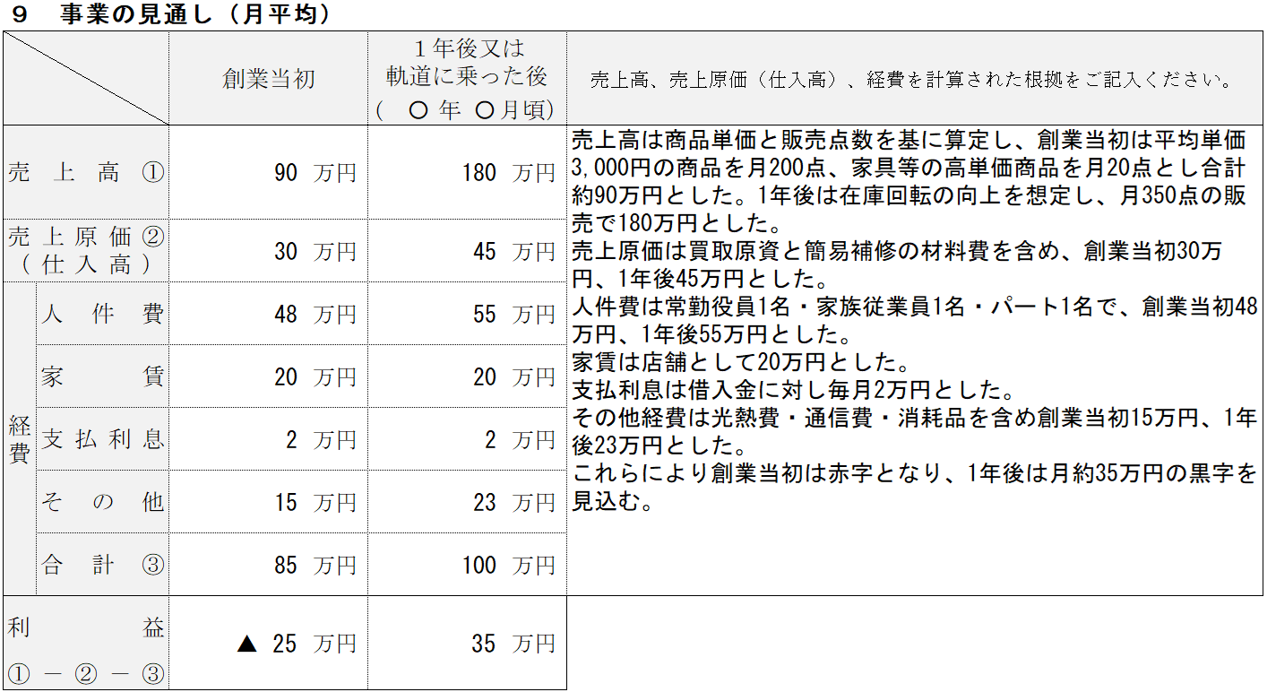 リサイクルショップの記入例⑨ 事業の見通し