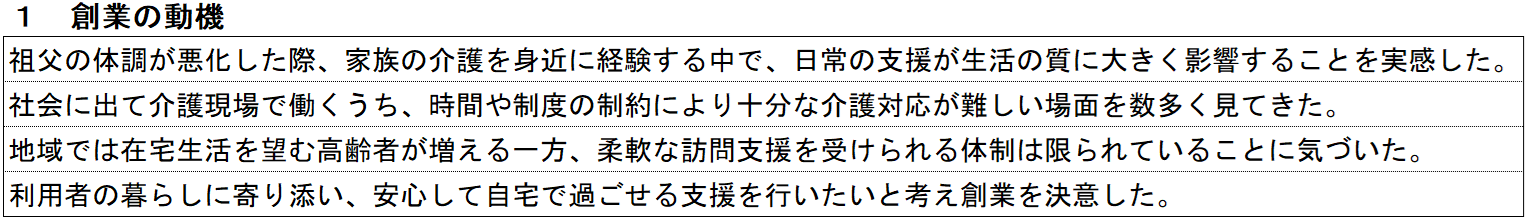 訪問介護の記入例① 創業の動機