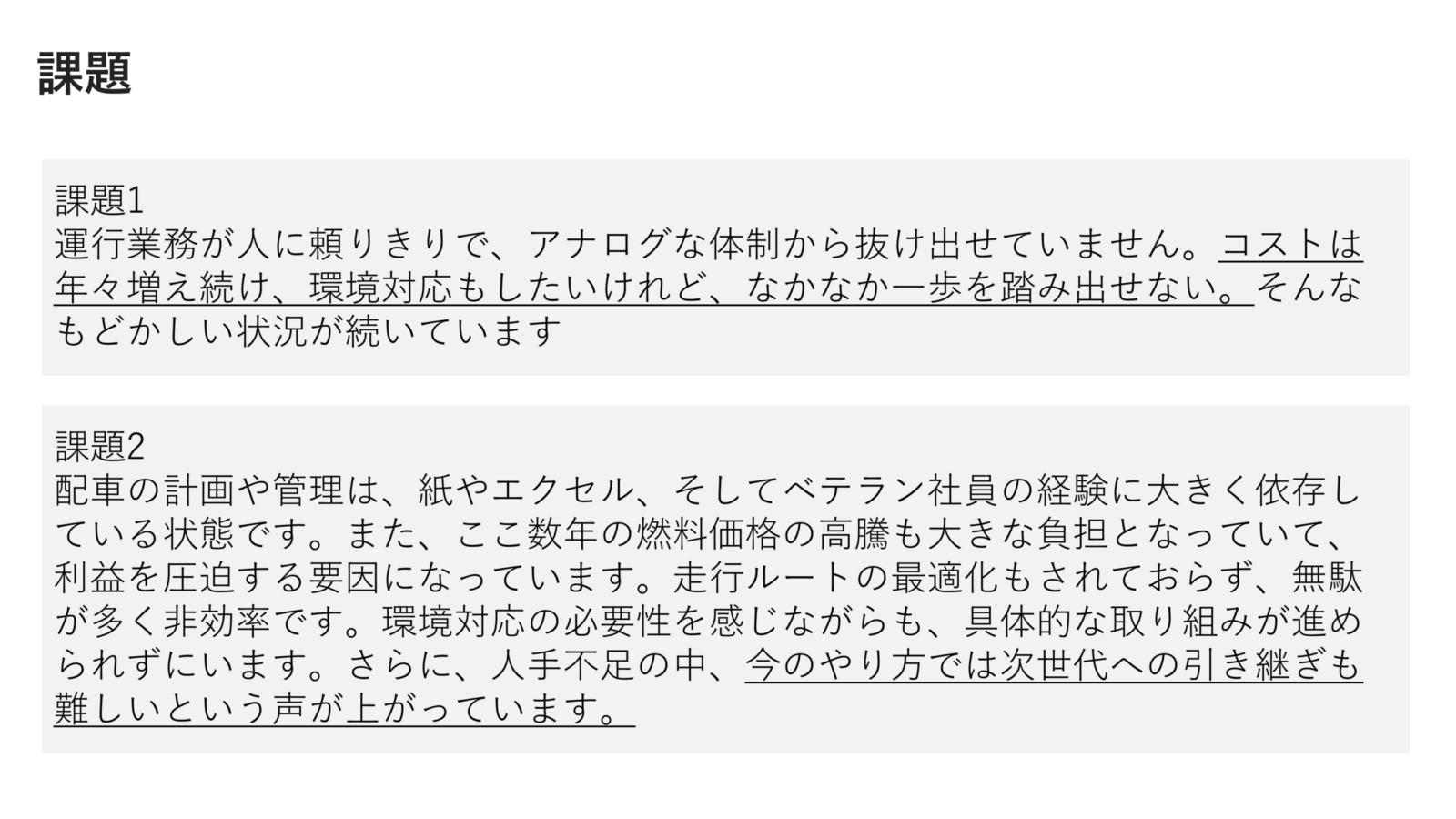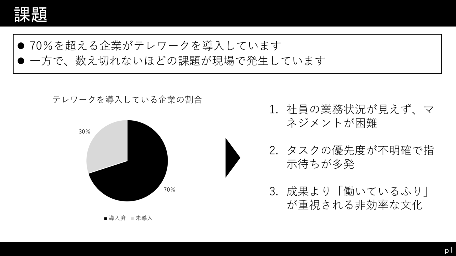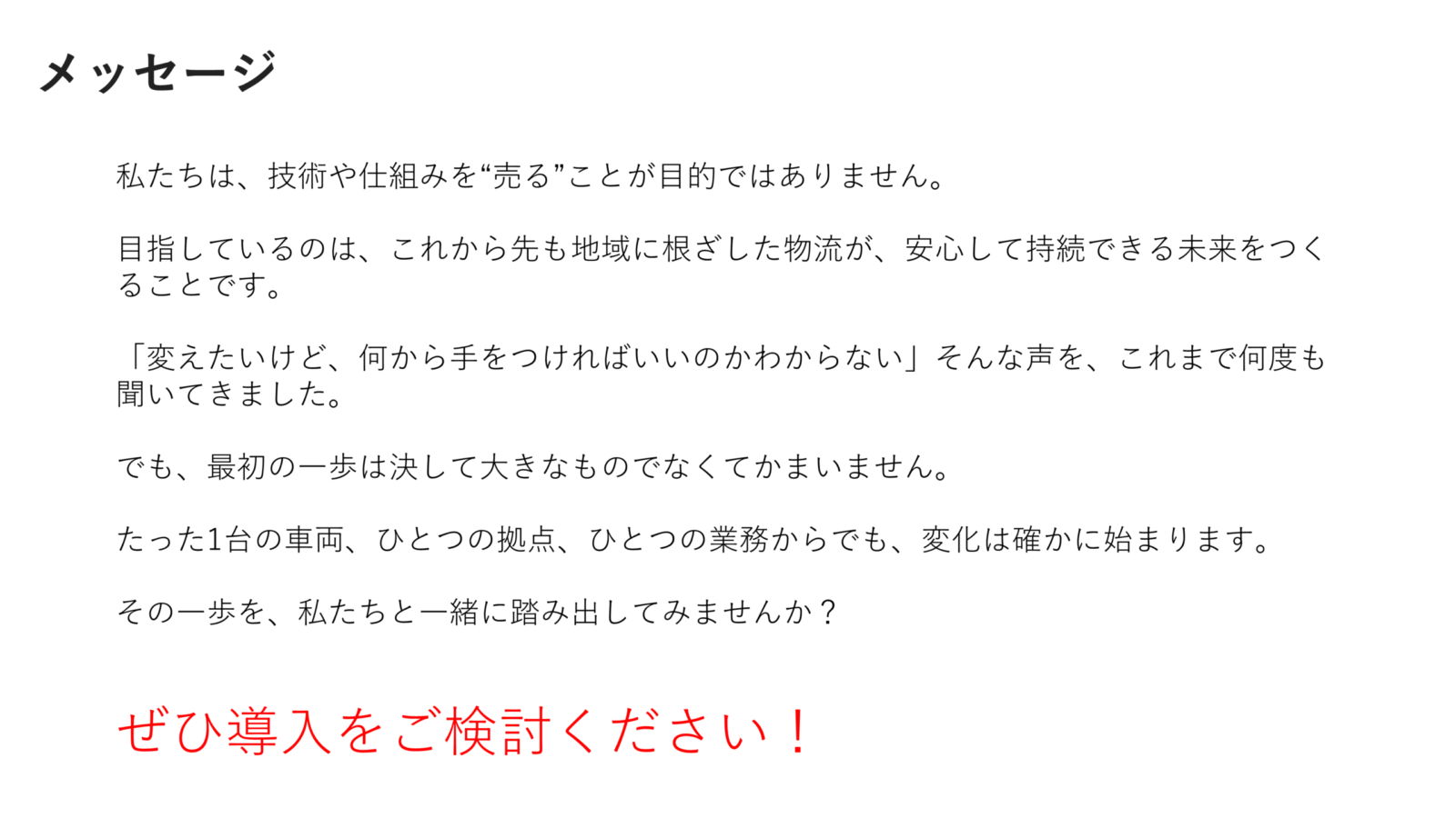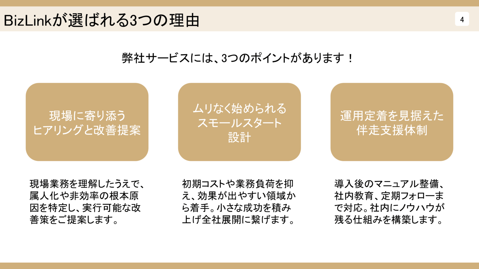 合意した構成・文章に基づいて、数枚のスライドを作成させていただきます。