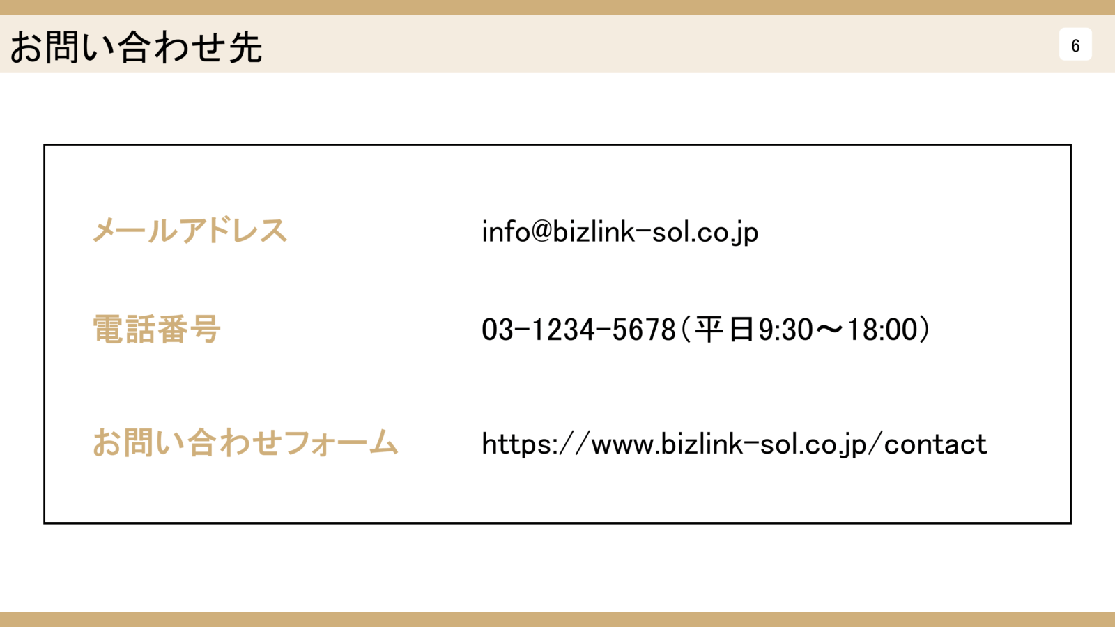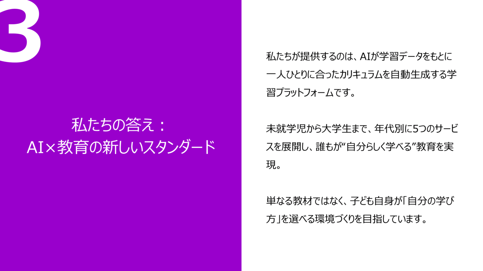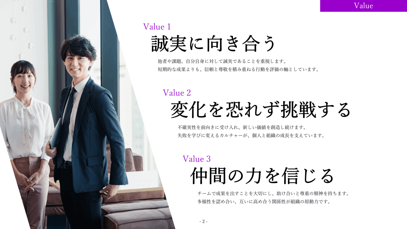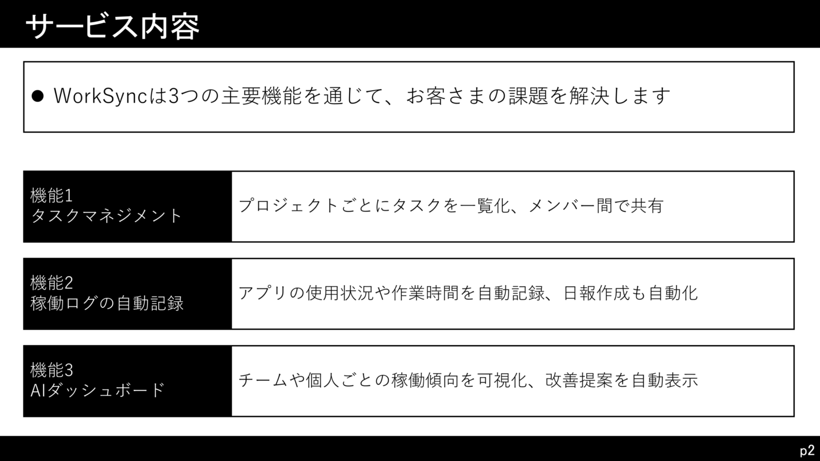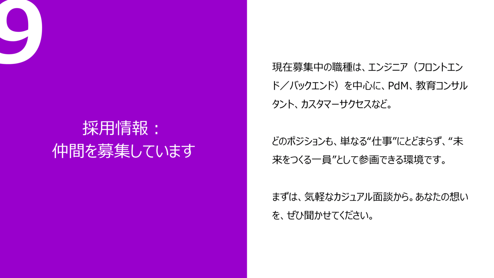 合意した構成・文章に基づいて、数枚のスライドを作成させていただきます。