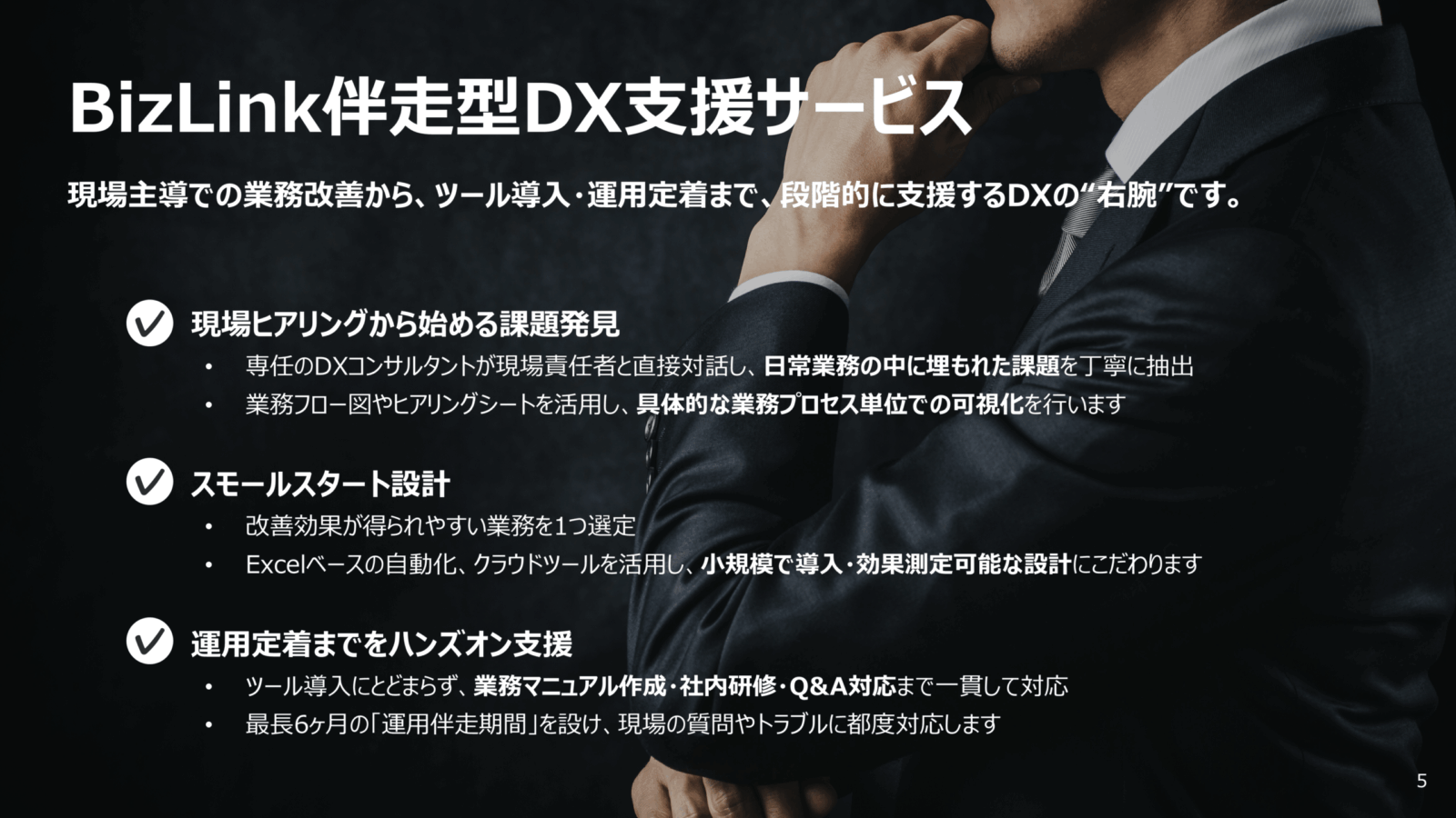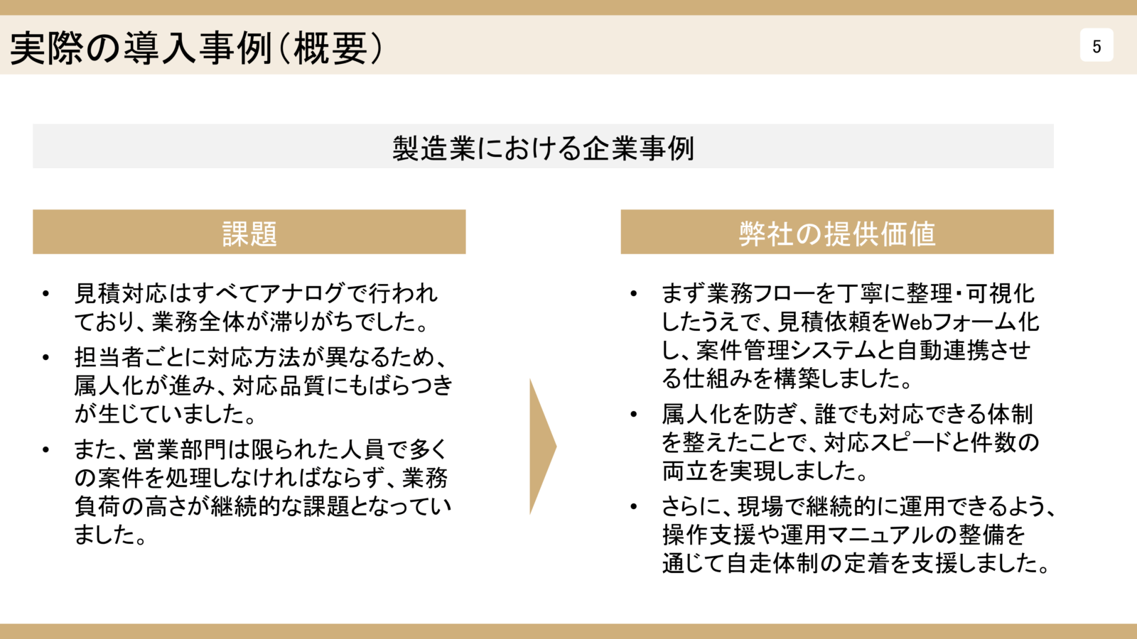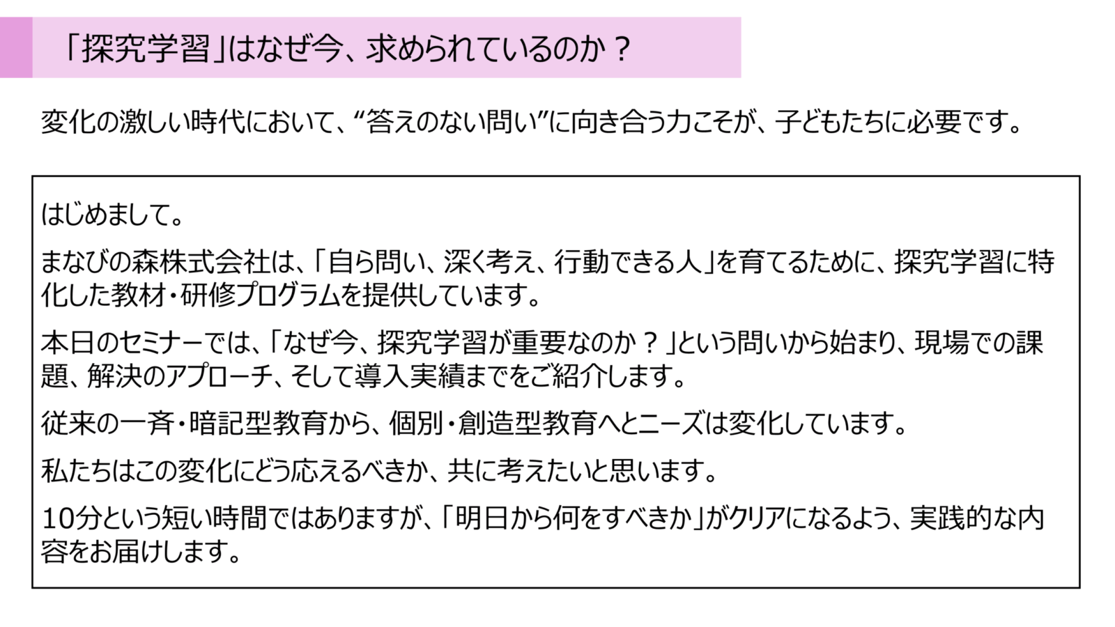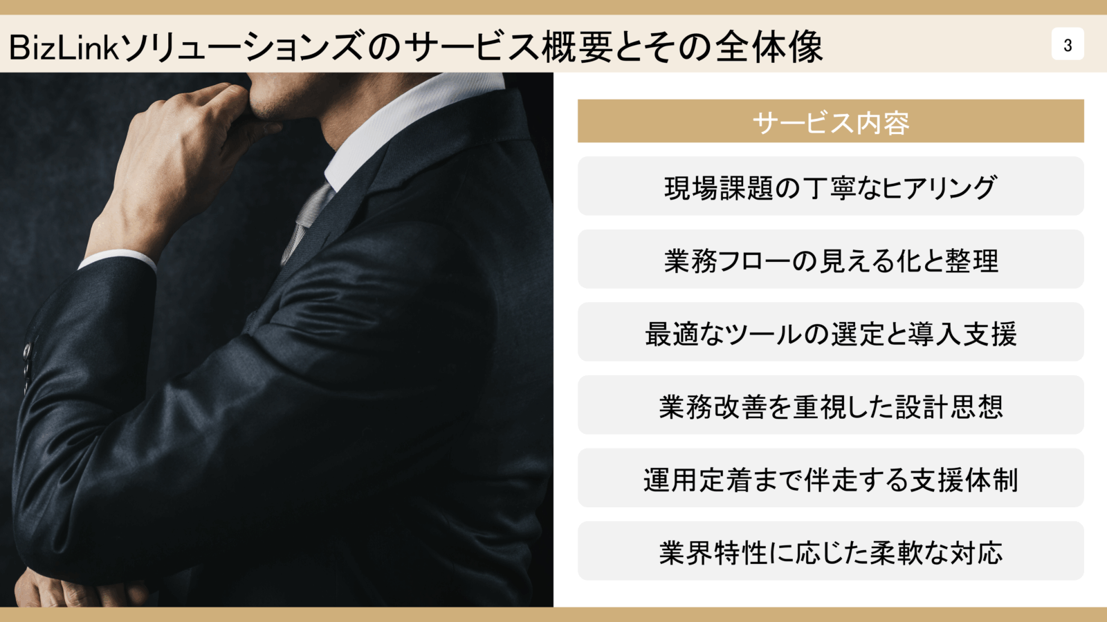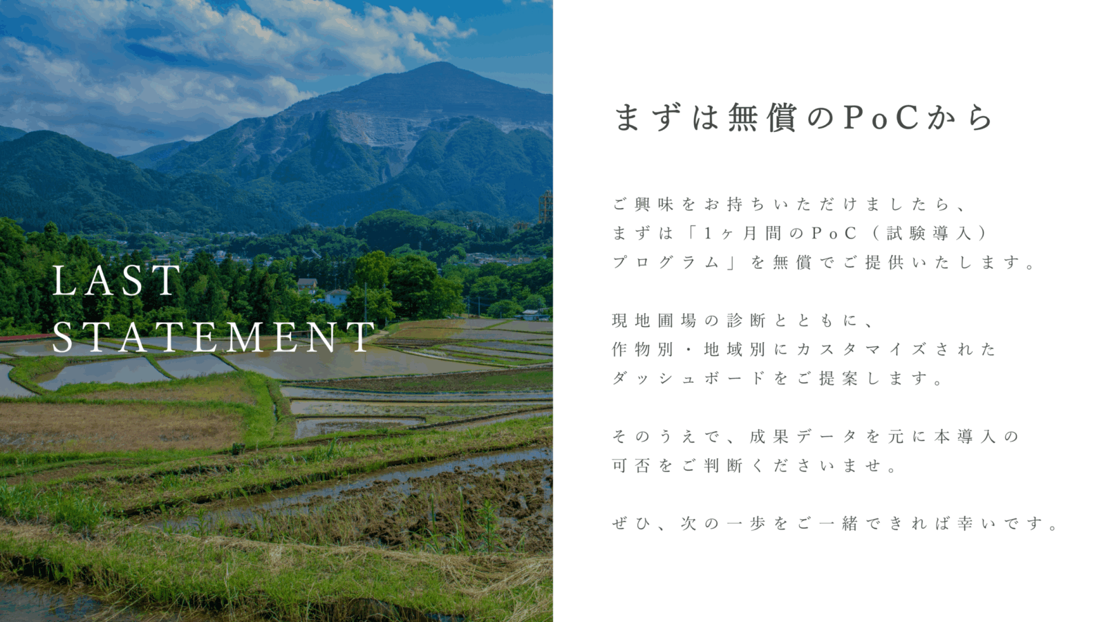 合意した構成・文章に基づいて、数枚のスライドを作成させていただきます。