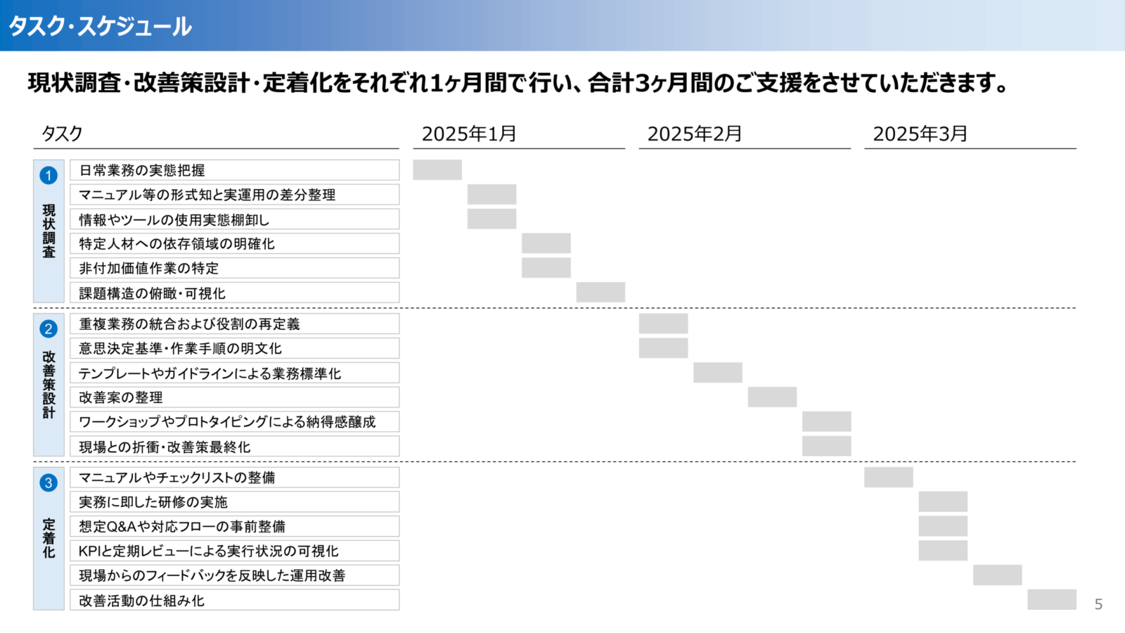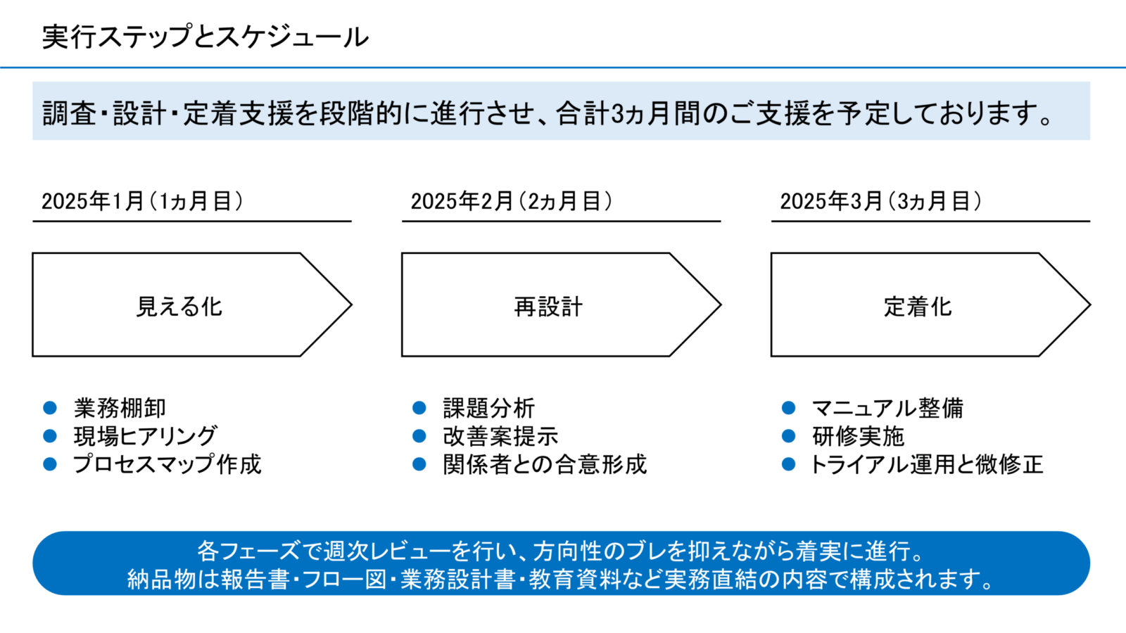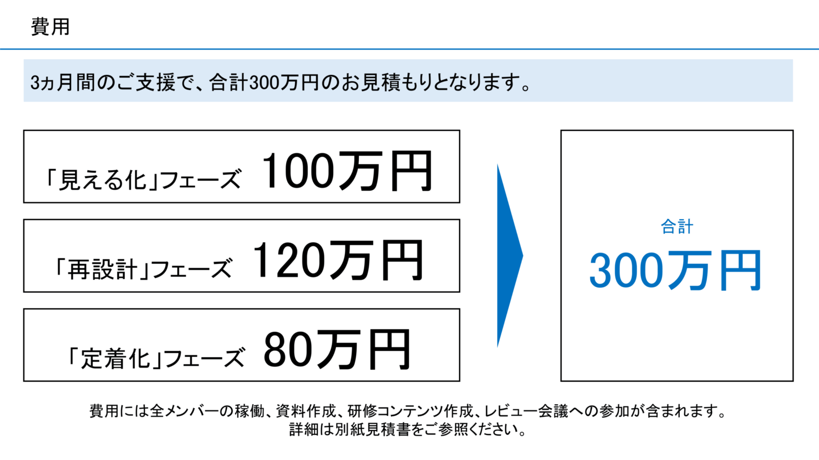 これにより資料の「構成・文章」を合意し、成果物の認識相違を防ぐことができます。