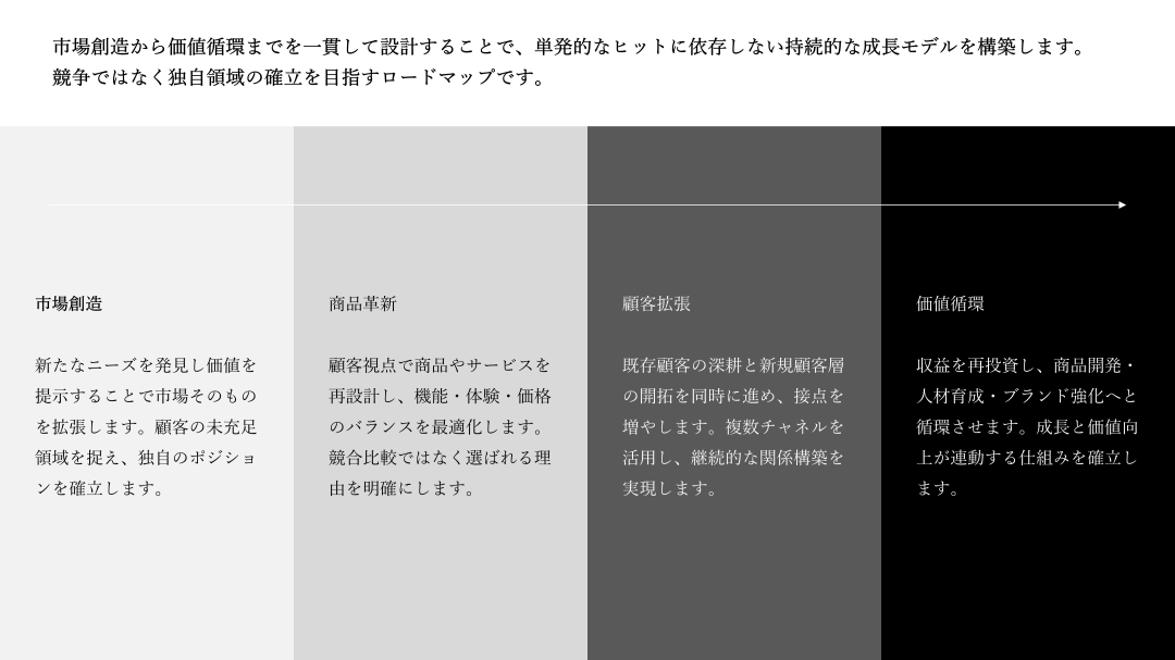 ロードマップは、会社や事業の将来を示してくれる大切なスライドです。