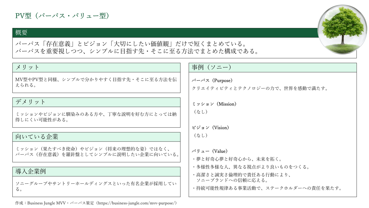そのような方におすすめしたいのが、MV型(ミッション・バリュー型)やPV型(パーパス・バリュー型)です。