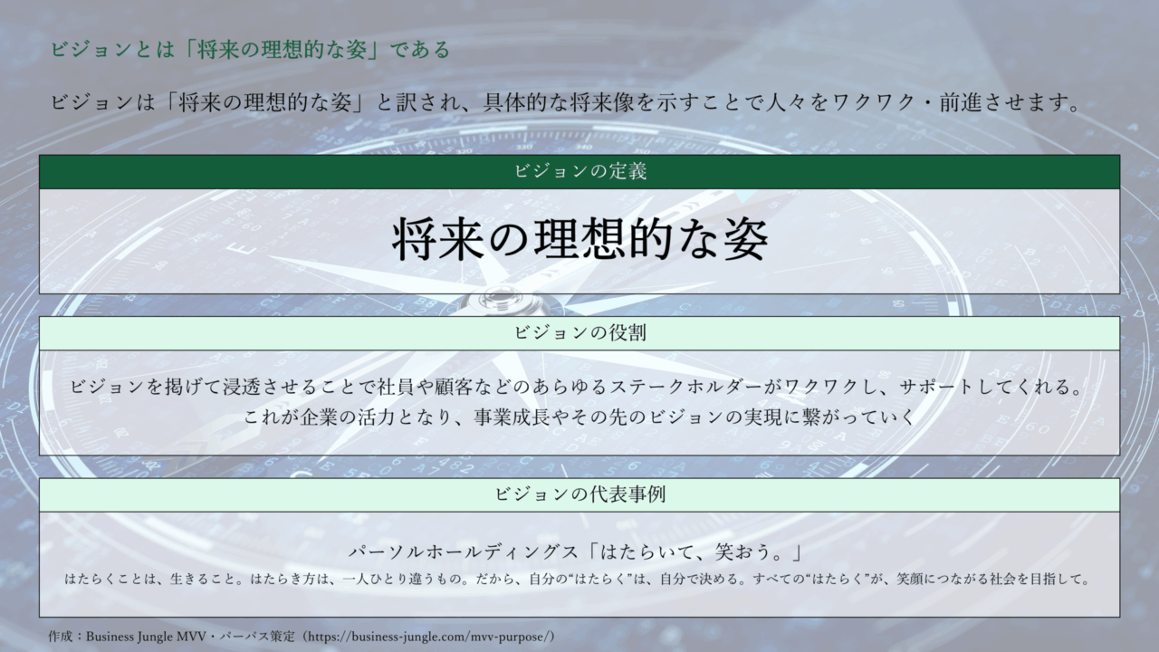 なお、ビジョンについてもっと詳しく知りたい方は、こちらの記事をご覧ください。