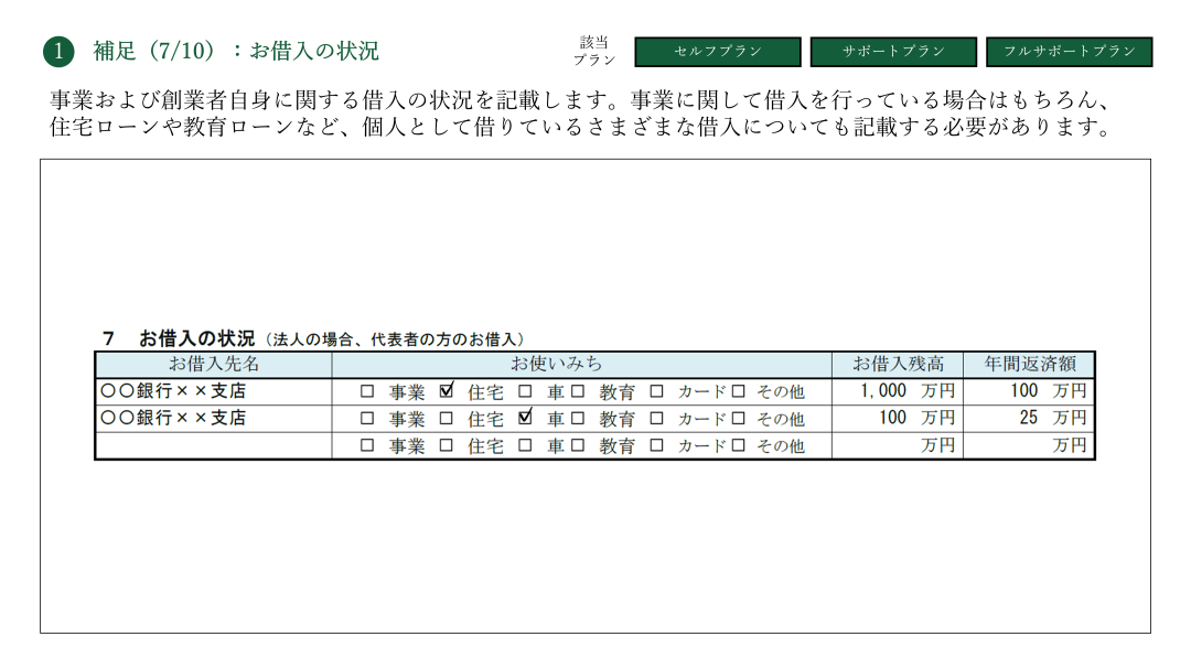 | ⑥融資向け補足資料の作成 | ー | ー | ◯ |