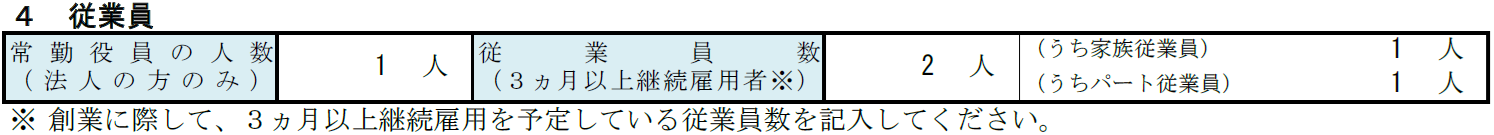 従業員の項目では、役員や従業員、家族従業員・パート従業員の内訳を記載します。