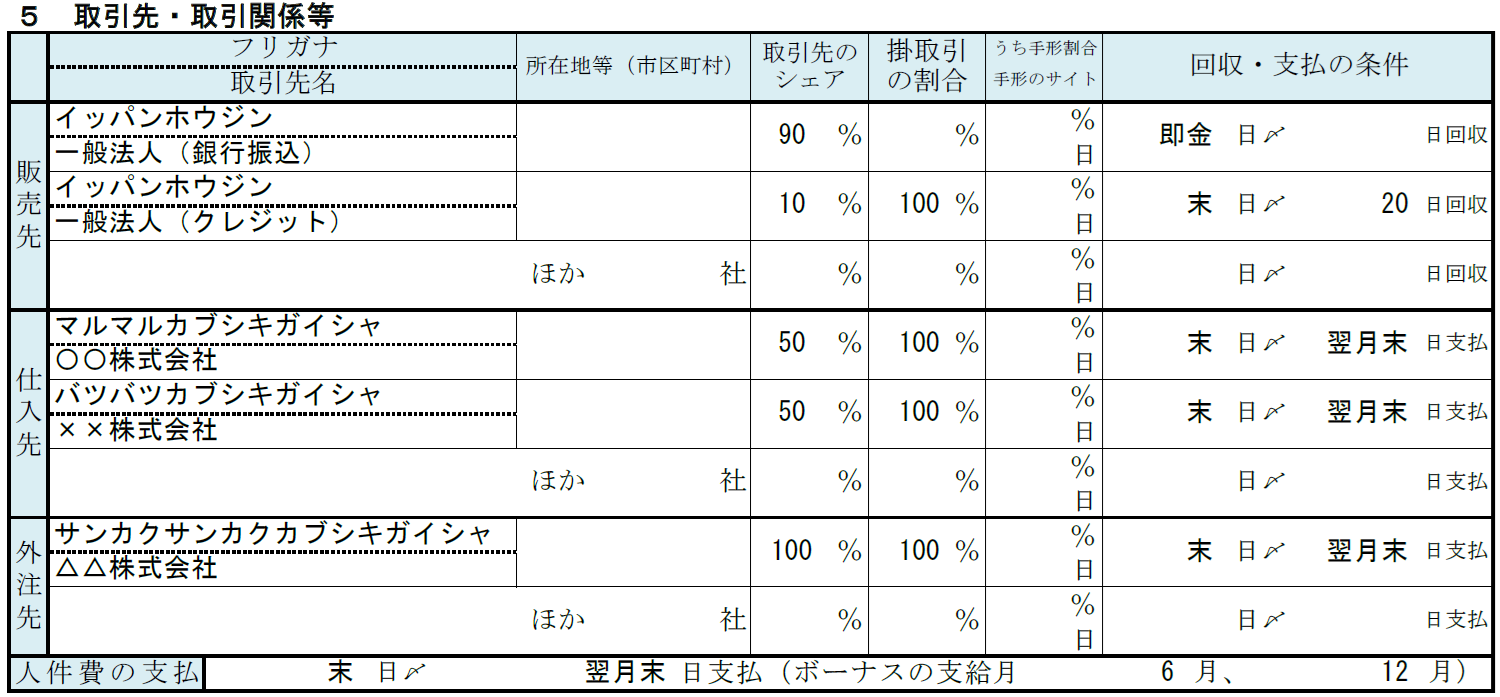 アパレル事業の記入例⑤ 取引先・取引関係等