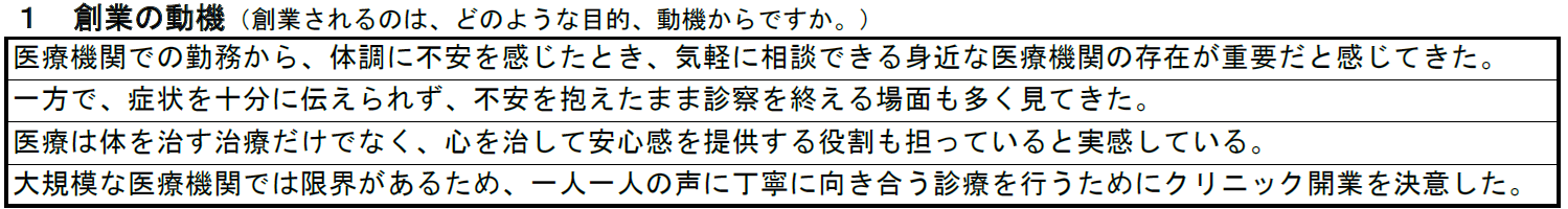 クリニック(医院・診療所)の記入例① 創業の動機