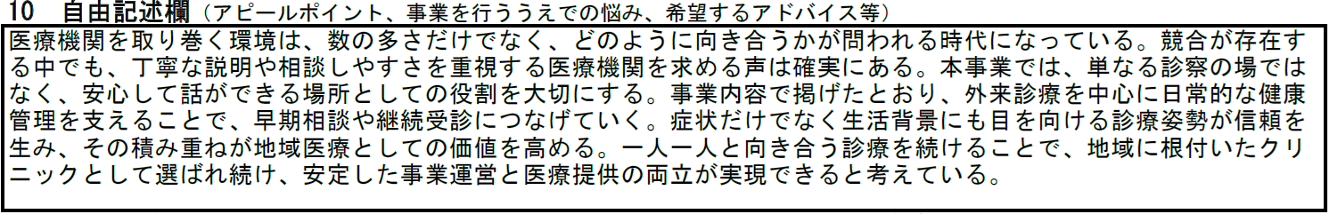 クリニック(医院・診療所)の記入例⑩ 自由記述欄