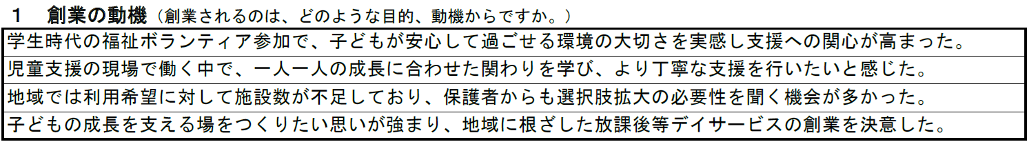 放課後等デイサービスの記入例① 創業の動機