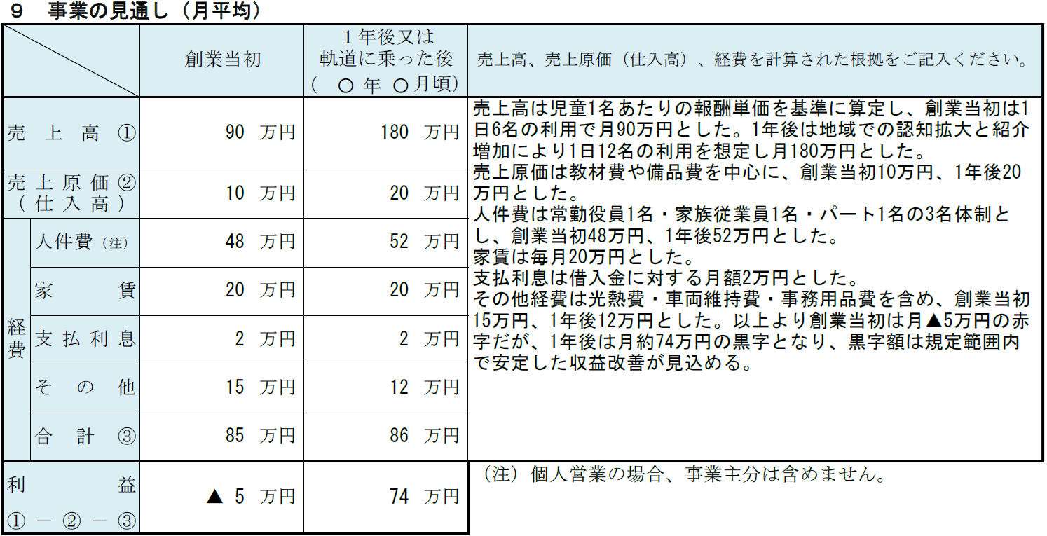 放課後等デイサービスの記入例⑨ 事業の見通し