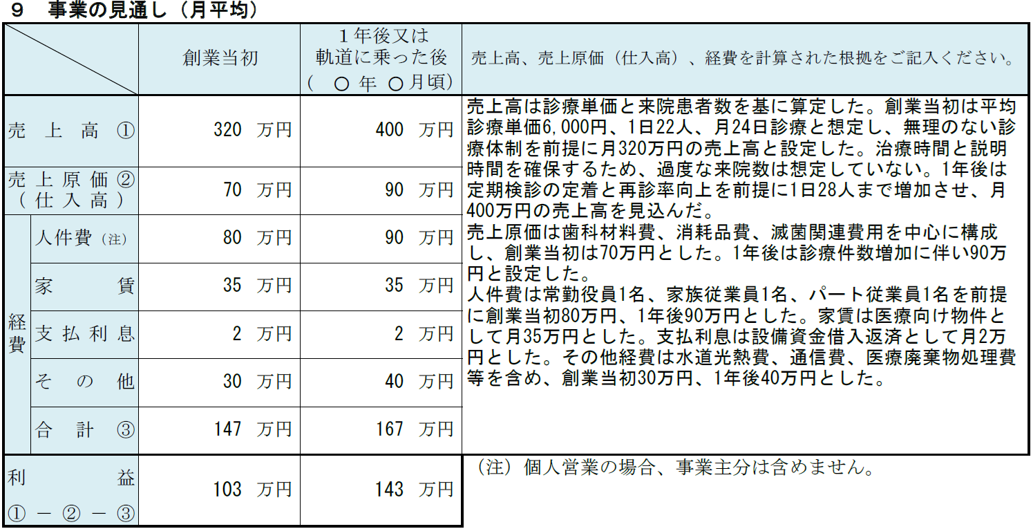 歯科診療所(歯医者)の記入例⑨ 事業の見通し
