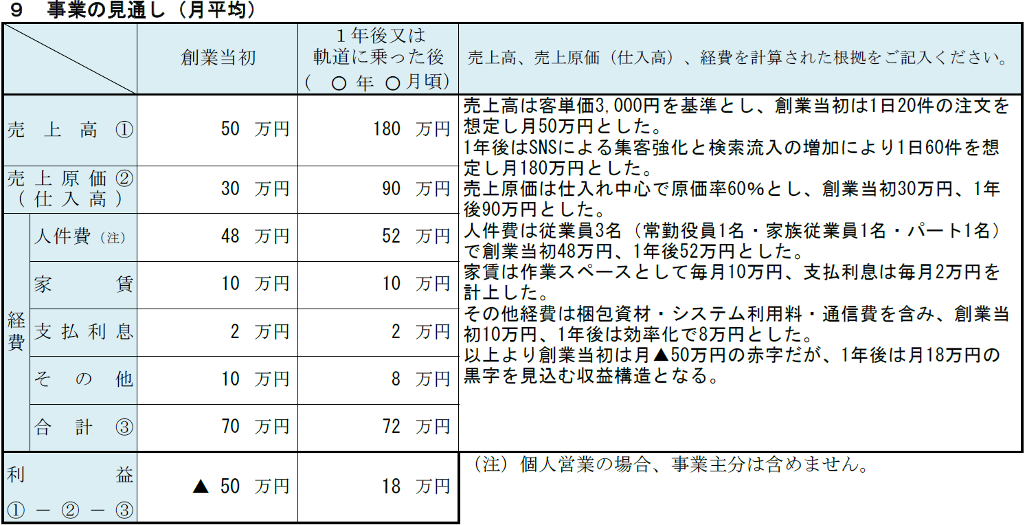 EC(ネットショップ)の記入例⑨ 事業の見通し