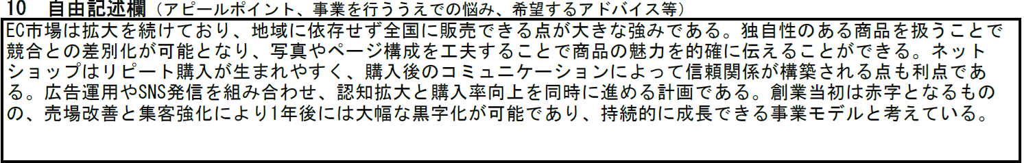 EC(ネットショップ)の記入例⑩ 自由記述欄
