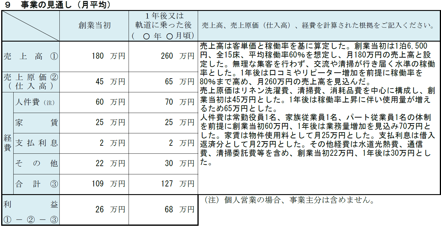 民泊・ゲストハウスの記入例⑨ 事業の見通し