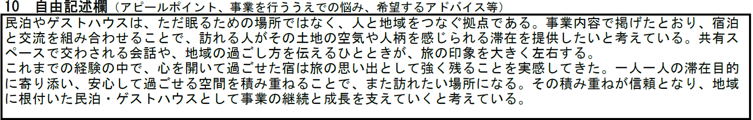 民泊・ゲストハウスの記入例⑩ 自由記述欄