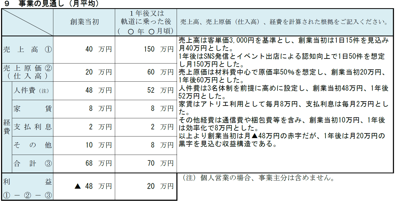 ハンドメイド事業の記入例⑨ 事業の見通し