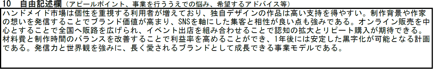 ハンドメイド事業の記入例⑩ 自由記述欄