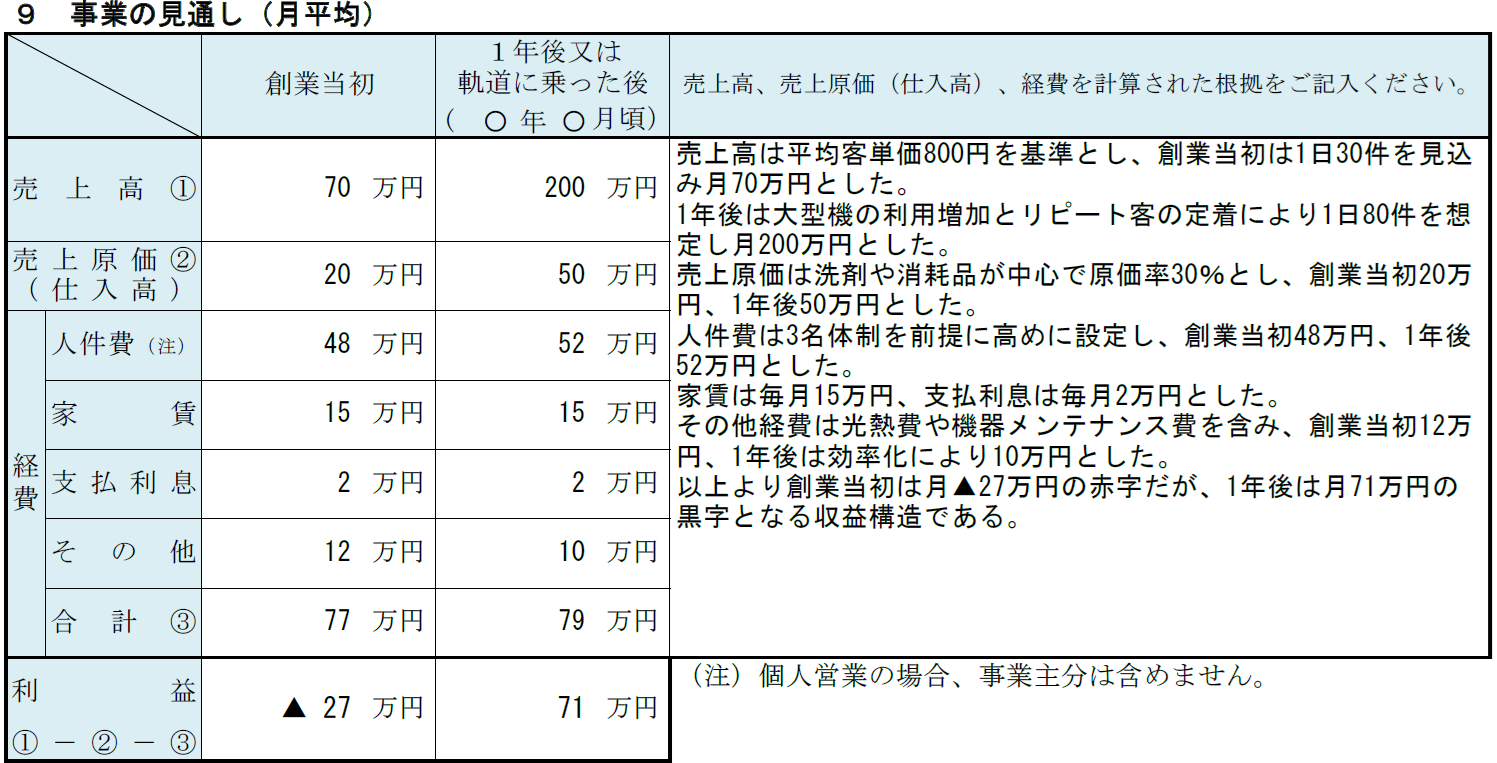 こうした収支を整理することで、創業期の損益の見通しを把握しやすくなり、事業としての方向性を分かりやすく伝えることができます。