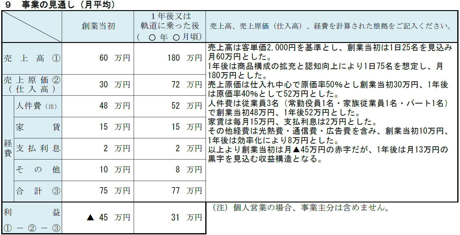 なお、借入があること自体は珍しいことではなく、生活費や設備費の事情で必要な場面もあります。状況をきちんと示しておくことで、計画全体の透明性が高まり、読み手にとっても安心材料になります。