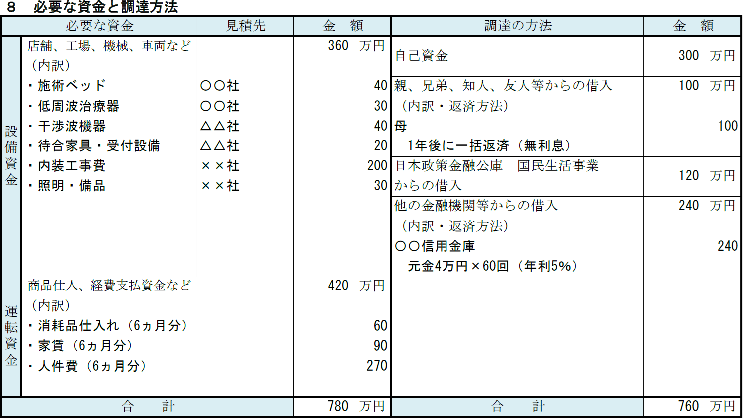 必要な資金を記載する際には、整骨院の開業に必要となる設備資金と運転資金を整理していきます。