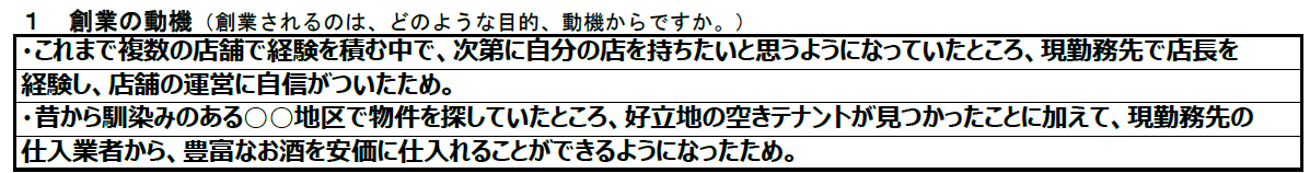 例えば、「とにかく創業したいです!頑張ります!」と言っている方と、「〇〇という理由で創業を目指していたのですが、〇〇を経験して実力・実績を付けることができ、かつ〇〇というチャンスが巡ってきたので、これを機に創業します!」と言っている方。どちらが安心感を与えてくれるか、言うまでもないでしょう。