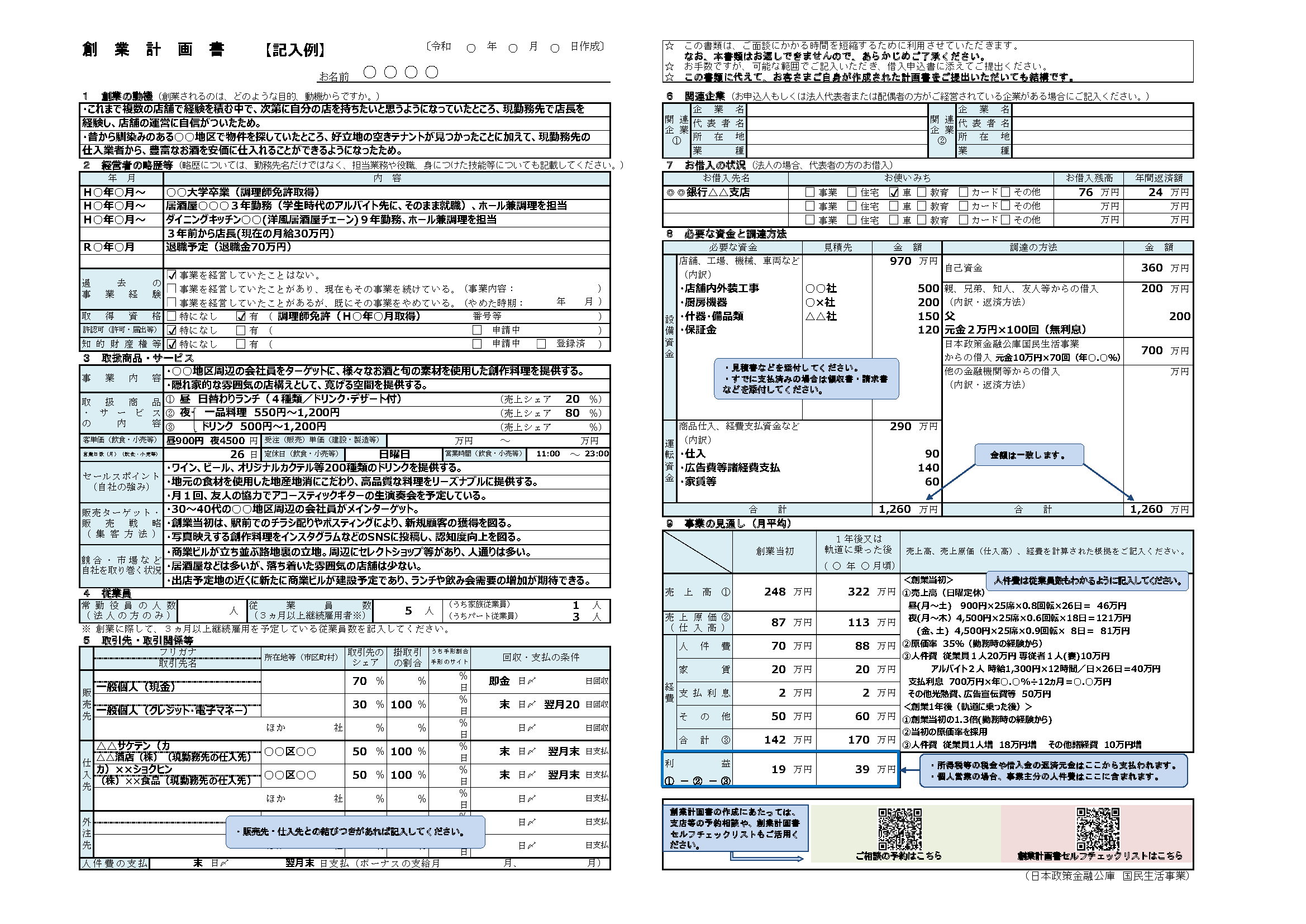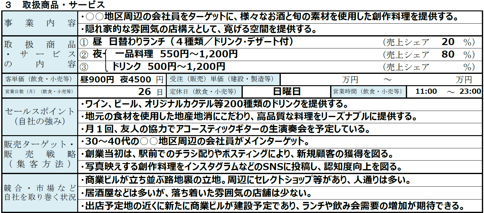 出所:日本政策金融公庫「各種書式ダウンロード 創業計画書記入例 洋風居酒屋」(https://www.jfc.go.jp/n/service/dl_kokumin.html)より引用