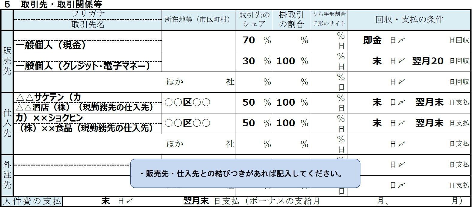 外注先や人件費の支払いについても、該当する場合は忘れずに記載するようにしてください。