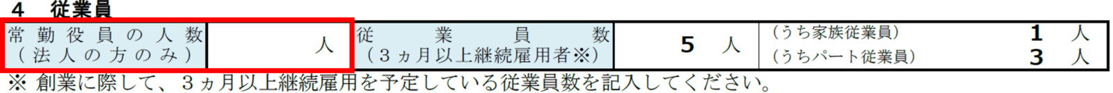 なお、法人ではない場合、常勤役員の欄は記載する必要がありません。個人事業主などが該当します。