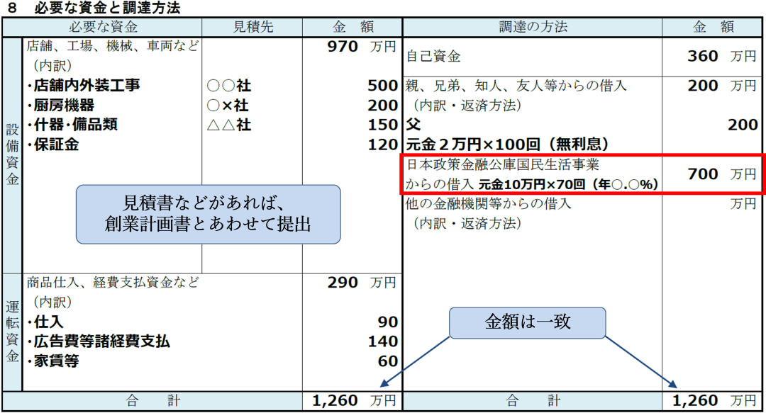 「必要な資金と調達方法」の業種別記入例・テンプレート